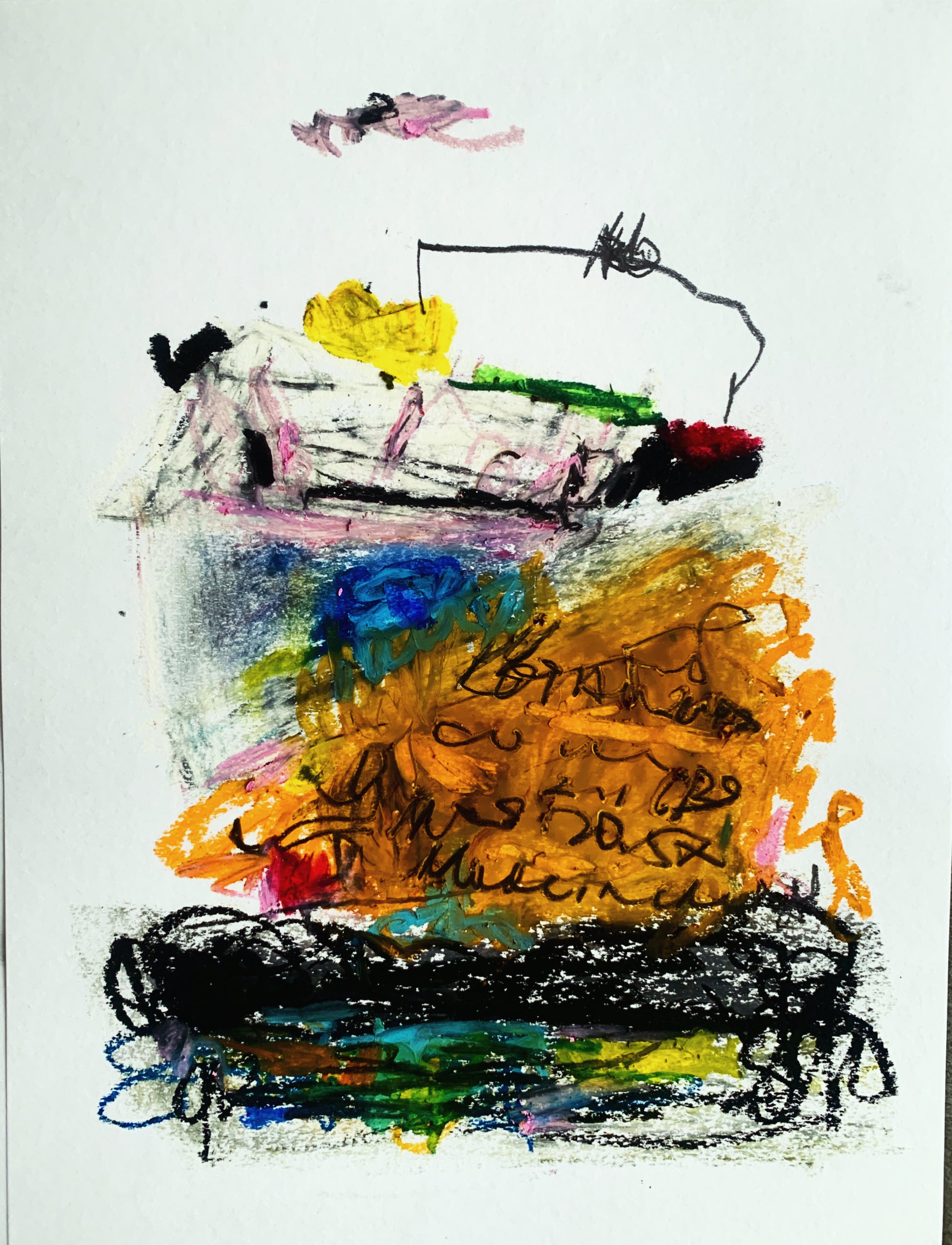Pencil, charcoal, and oil pastel on paper